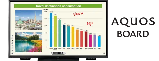 Sharp AQUOS BOARD® interactive display systems are much more than your typical interactive white boards. Designed for smooth and effortless communication in a wide range of contexts, their highly responsive touch pens allow several people to write on the same touch screen at the same time. And the SHARP Display Connect software enables multifaceted wireless communication.